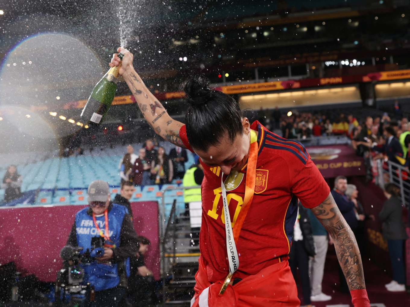 Spain's Jennifer Hermoso celebrates after winning the World Cup. (Reuters/Amanda Perobelli)